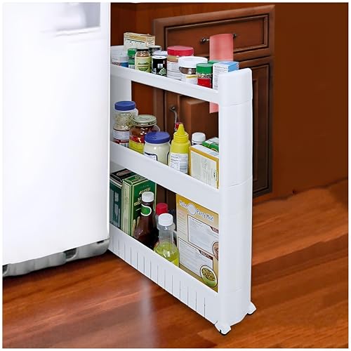 - تم تصميم عربة التخزين الرفيعة هذه المكونة من 3 أو 4 طبقات بحيث تكون مرنة وذات سعة واسعة، وهي مصممة بخبرة للاستخدام في المساحات الضيقة داخل المنزل. تخدم أغراض متعددة، وتعمل بشكل جميل في الدواليب والمطابخ والحمامات والجراجات وغرف غسيل الملابس والمكاتب والمساكن والمكتبات أو حتى بين الغسالة والمجفف. يسمح تصميمها بسهولة الوصول إلى الأغراض مع تحسين الحد الأدنى للمساحة بشكل فعال. عند عدم الاستخدام، يمكن تخزين العربة بسهولة بعيدًا عن الطريق، مما يجعلها مثالية.