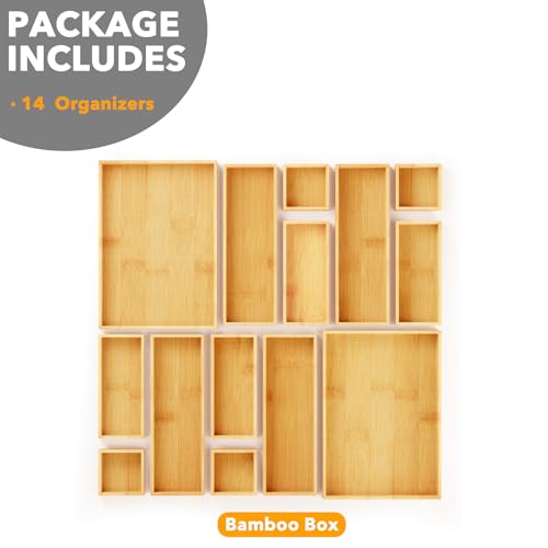 SpaceAid - سبيس ايد مجموعة صناديق تخزين من الخيزران لتنظيم الادراج مكونة 14 قطعة مقسمة متعددة الاستخدامات للمطبخ والحمام والمكتب وتنظيم المكياج طبيعي