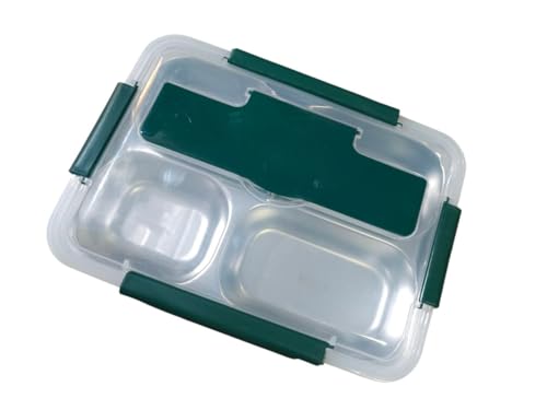 Generic - صندوق غداء مستطيل من الستانلس ستيل من سبيس شوب سعة 950 مل مع 4 مساحات تخزين (اخضر)