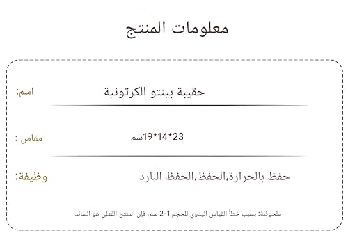 - بفضل مساحة التخزين الواسعة، تتسع حقيبة الغداء هذه للوجبات الخفيفة والفواكه والمشروبات، وتلبي احتياجات الأفراد من جميع الأعمار. سواء كنت تحزم أمتعتك للتنزه أو المدرسة أو العمل، فهي تلبي احتياجاتك.