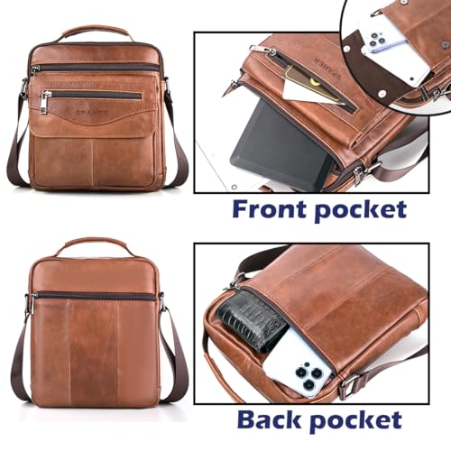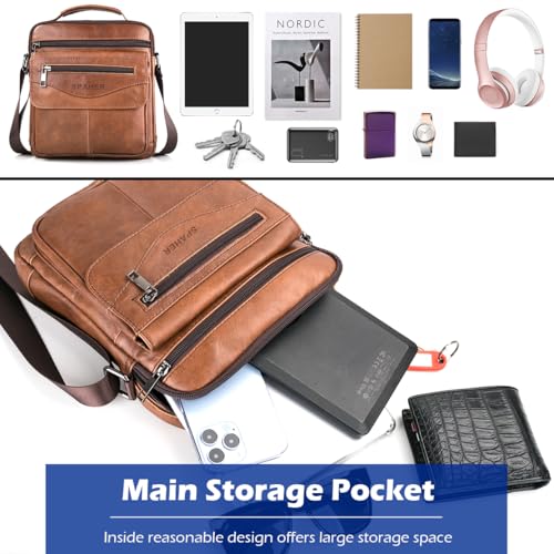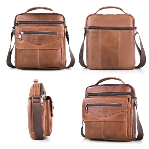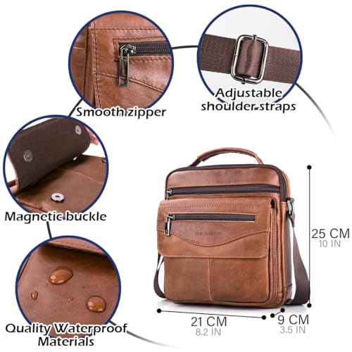 SPAHER - سباير شنطة يد جلدية للرجال حقائب كتف ماسنجر شنطة عمل كروس ساتشيل بحمالة كتف مقاومة للماء شنطة سفر يومية للرجال مع حزام كتف قابل للتعديل لايباد 11 انش