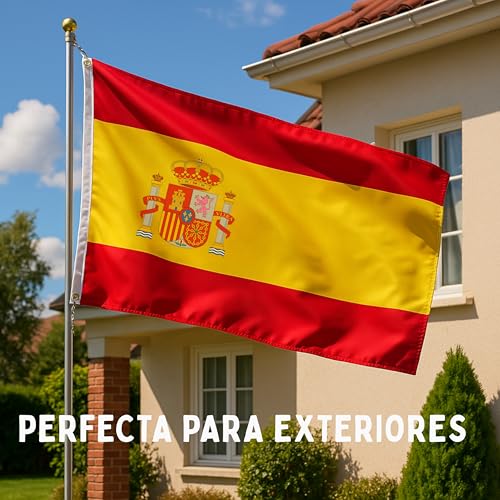 - سهل التركيب بفضل الثقوب المعدنية القوية. علم إسبانيا هذا مجهز بفتحات معدنية قوية تسمح بسهولة التثبيت على الجدران أو الشرفات أو سارية العلم. مثالية للديكورات الوطنية أو المناسبات الرياضية أو الأعياد الوطنية.