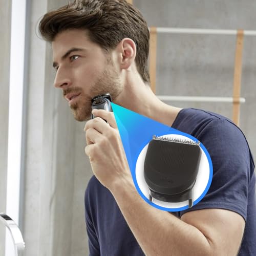 - 🧔 شفرات حادة من الفولاذ المقاوم للصدأ - شفرات متينة ولطيفة على البشرة مصممة للتنظيف والتشذيب المتساوي مع تقليل الشد وتهيج البشرة.