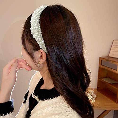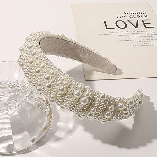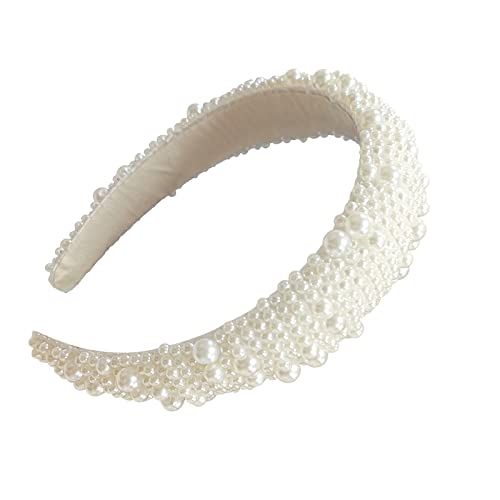 JIOJIO - شريط رأس كبير مرصع بأحجار الراين الكريستالية المتلألئة للنساء والفتيات، مبطن بالمخمل، مزين بالألماس، طوق شعر لحفلات الزفاف القوطية، إكسسوار شعر أنيق لامع (لؤلؤ أبيض)