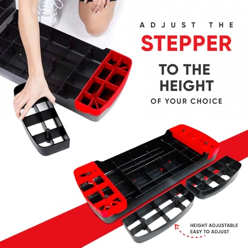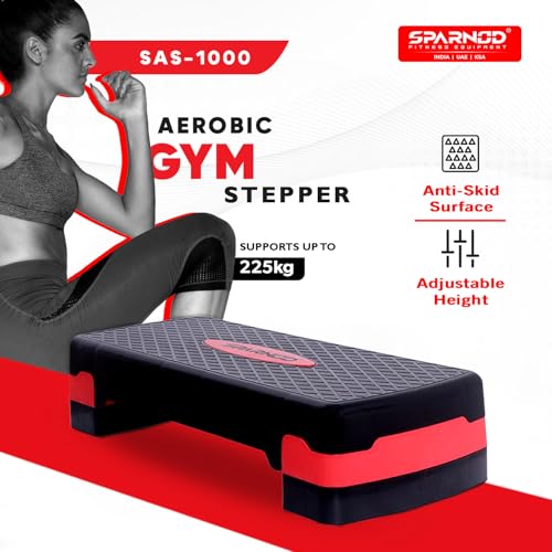SPARNOD FITNESS - جهاز تمارين أيروبيك فيتنس للتمارين المنزلية بارتفاع قابل للتعديل، سطح مضاد للانزلاق، يدعم حتى 225 كيلوجرام، مدمج وقابل للحمل، مثالي للكارديو، تمارين القوة والبلاتيس، لون الأحمر، SAS-1000، من سبارنود