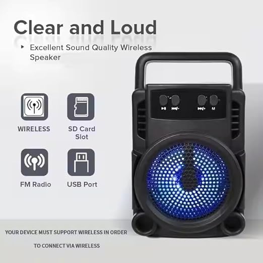 Generic - مكبر صوت بلوتوث لاسلكي محمول مع USB وبطاقة تي اف، مشغل موسيقى صغير لسطح المكتب بقدرة 5 واط مع ضوء LED ومقبض، ZR225S