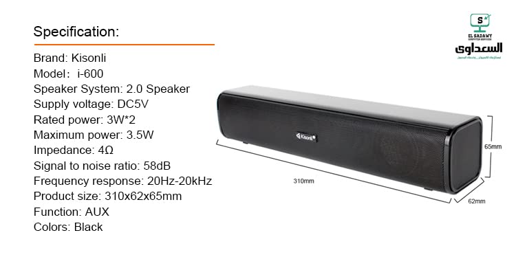 Generic - سبيكر - سماعات - للكمبيوتر والموبايل - مدخل الطاقة USP مدخل الصوت AUX -3.5 - اللون اسود - كيسونلي i600