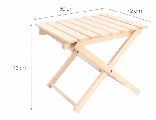 - طاولة جانبية صغيرة (طاولة تخييم). أبعاد الطاولة: الطول 50 سم، العرض 42 سم، الارتفاع 42 سم. خشب الزان.