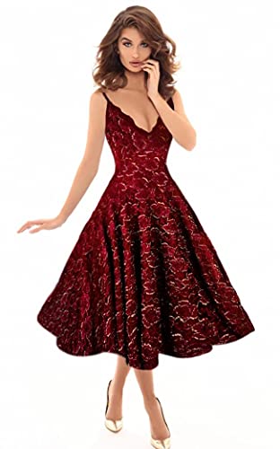 FG - فستان مناسبه خاصه لون احمر نبيذى مقاس موحد -للنساء، من اف جي