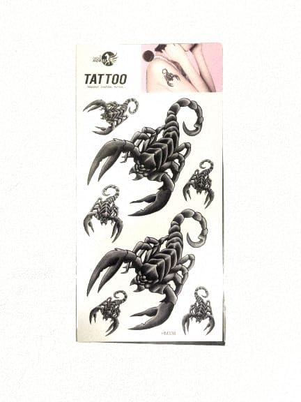 - تصميم مميز: مجموعة متنوعة من الوشوم المؤقتة تتضمن تصاميم العقرب والنسر بأسلوب فني أنيق باللونين الأسود والرمادي
