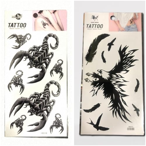 Generic - عرض خاص ٢مجموعة تاتو مؤقت، تصميم العقرب والنسر الأسود، ٢ قطعة ضد الماء و يدوم أكثر من أسبوعين
