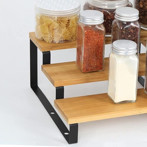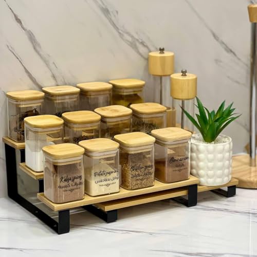 Generic - "عرض خاص: سلم ومنظم خشبي-معدني للمطبخ والتوابل والاكسسوارات، متعدد الاستخدامات يشيل حتى 12 برطمان" - من جينيريك