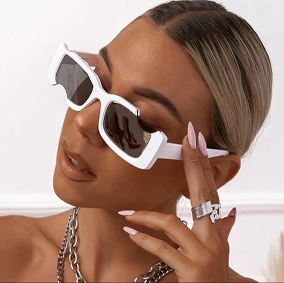 Generic - نظارة شمسية مربعة خاصة للنساء والرجال، تصميم عصري فريد للحماية من اشعة الشمس (ابيض)