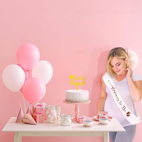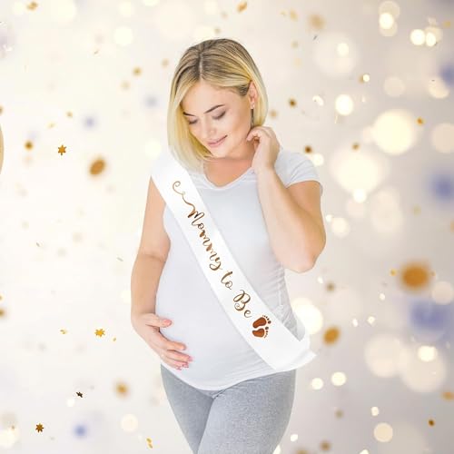 - وشاح ساتان بتفاصيل ذهبية وردية: وشاح مامي تو بي مصنوع من قماش الساتان الفاخر، ويتميز بحروف ذهبية تحمل عبارة "Mommy to Be". يضيف هذا الوشاح لمسة من الرقي إلى الاحتفال ويضمن أن تشعر الأم المستقبلية بأنها مميزة حقًا.