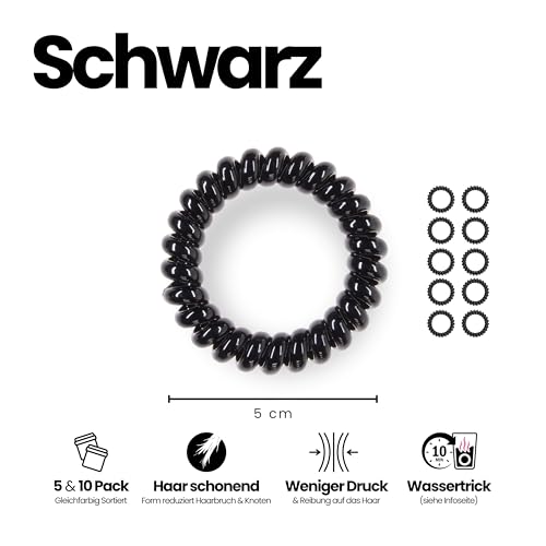 Specora - ربطات شعر حلزونية من سبيكورا - عبوة من 10 قطع - 5 سم من البولي يوريثين الحراري - اسود