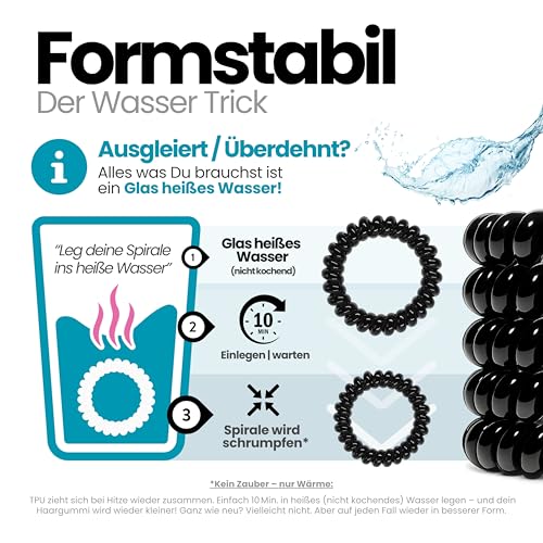 - صحية وسهلة التنظيف: ببساطة اغسلي ربطة الشعر الحلزونية جيدًا تحت الماء الدافئ بصابون اليد المفضل لديك. نصيحة: كما أنها تحمل بشكل رائع عند السباحة - مثل تجربتها.