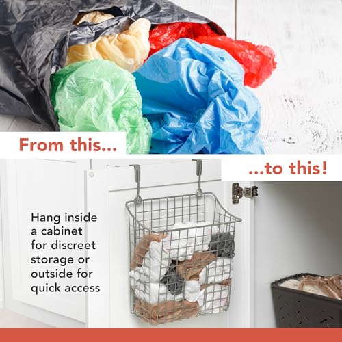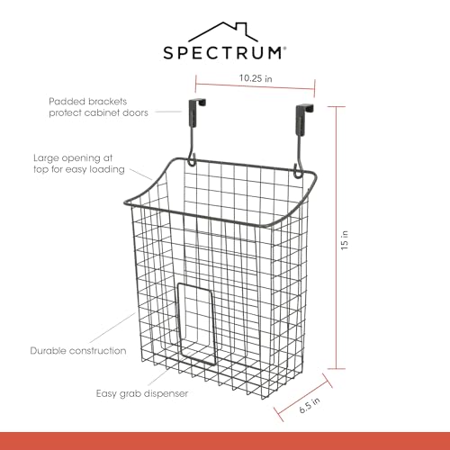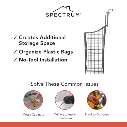 Spectrum - موزع شبكي متنوع يوضع فوق الخزانة، حامل بلاستيكي للتخزين في المطبخ، منظم حوض لإعادة تدوير أكياس البقالة من سبكترام، مقاس متوسط، رمادي صناعي