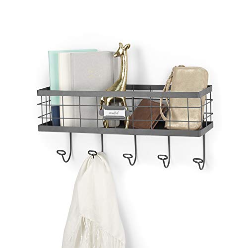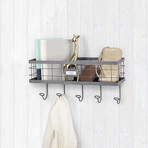 Spectrum - سلة سلكية عتيقة متنوعة ومتنوّعة من سبكترام ومحطة خطاف تخزين حائط ديكور مدخل لبيت المزرعة ريفي مع لوحة ملصقة قاعدة صفيحة معدنية منظم للبريد ورف خطافي للمدخل واحد رمادي صناعي معدن فولاذ