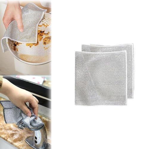 Spaceshoop - ليفة سلكية لغسيل الأطباق متعددة الأغراض للتنظيف الرطب والجاف، ليفة من الفولاذ المقاوم للصدأ غير مسببة للخدش سهلة الشطف وقابلة للغسيل في الغسالة لغسل الأطباق وأحواض الغسيل والأسطح من سبيكيولو، قطعتان