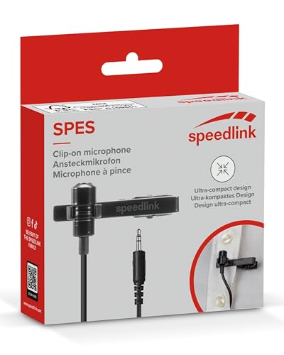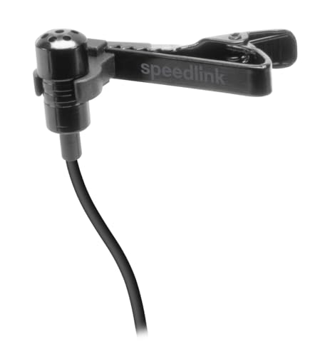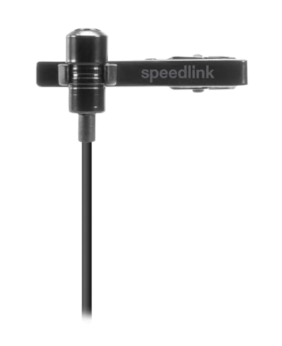 Speedlink - ميكروفون سبيس بمشبك معدني قابل للنزع مع كابل بقابس جاك 3.5 ملم ميكروفون تثبيت على الملابس مع قابس جاك مع خاصية إلغاء الضوضاء من سبيد لينك، أسود