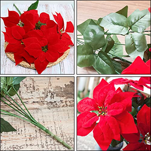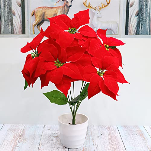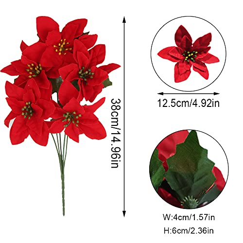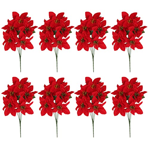 Speyang - سبيانغ باقة زهور الكريسماس الاصطناعية من الحرير البوينسيتيا باللون الاحمر 8 باقات البونسيتيا الحمراء مدببة للعطلات وحفلات الزفاف وديكور المنزل