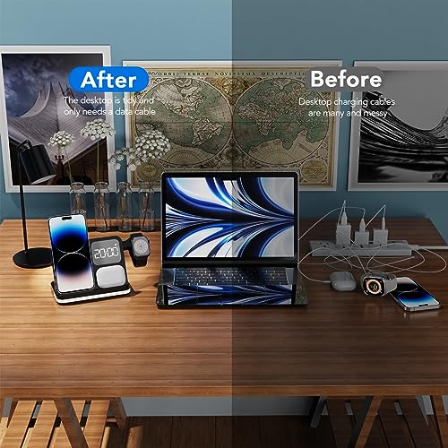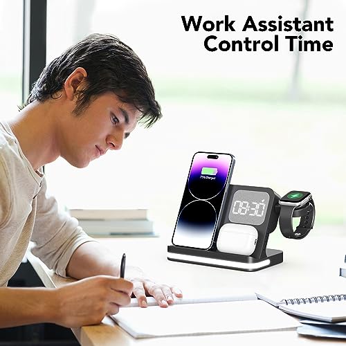 - 【محتويات العبوة】قاعدة شحن لاسلكية 4 في 1 × 1، 1 × كابل USB نوع C، 1 × دليل المستخدم. - إذا كانت لديك أي أسئلة، فلا تتردد في الاتصال بنا، وسنكون سعداء بخدمتك. (إرشادات: عرض الساعة بنظام 12 ساعة و24 ساعة)