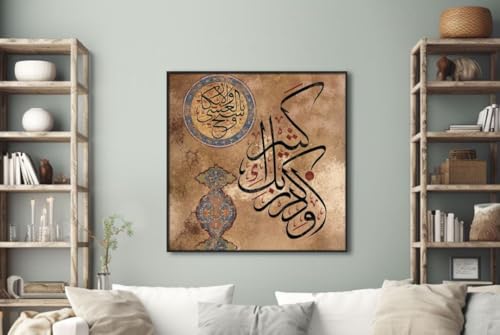 سفير آرت - لوحة جدارية من سفير آرت، طباعة فنية إسلامية عصرية لغرفة المعيشة، باللونين الأزرق والأخضر، مقاس 60 × 60 سم