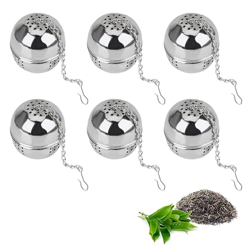 Daga - مصفاة شاي كروية من الفولاذ المقاوم للصدأ بسلسلة، فلاتر شاي من الفولاذ المقاوم للصدأ، فلتر شاي شبكي دقيق مع سلسلة، 6 قطع