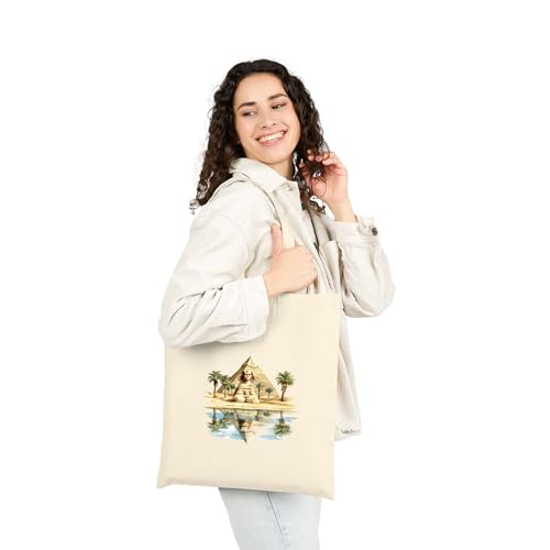 Generic - شنطة تسوق قماشية بتصميم فن مصر القديمة - شنطة يد للفن الفرعوني التاريخي - مثالية لمحبي الاثار المصرية والسفر مع سحاب - 840