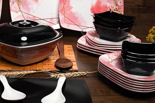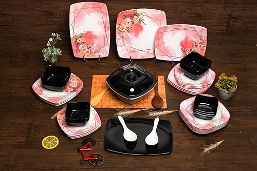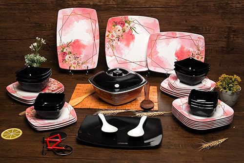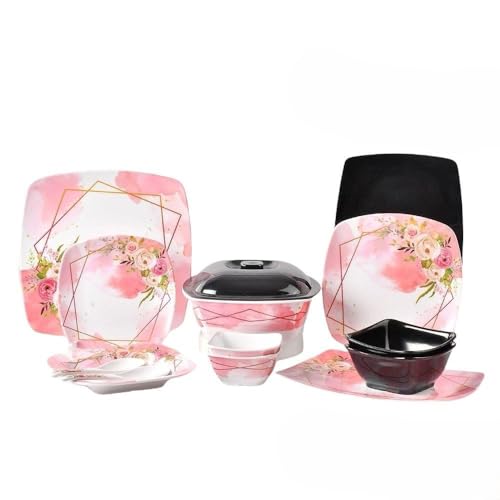 Sphinx Group - طقم عشاء تركي رويال هوم من الميلامين اس بي اتش 1 من سبينكس جروب 38 قطعة، بينك/أسود