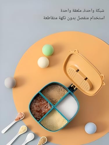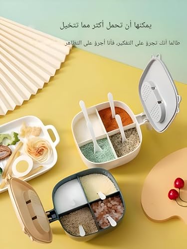 - قاعدة مقاومة للماء: تساعد قاعدة علبة التوابل الأربعة على تأمين القاعدة ومنع دخول مياه المطبخ إلى حافظة التوابل. سوف تحصل على علبة توابل 4 في 1 مقسمة لأربعة أجزاء مع 4 معالق، وصينية واحدة