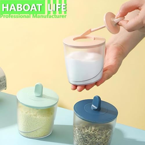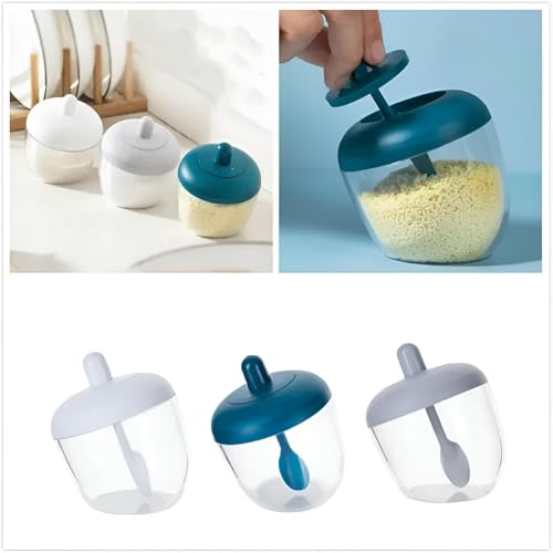 Generic - مجموعة علب توابل، برطمانات توابل بلاستيك كاملة مع أغطية ومعالق مثالية لسكر الفانيليا والملح والتوابل، للحفاظ على التوابل طازجة ومنظمة - متعددة الألوان - عبوة من 3 قطع
