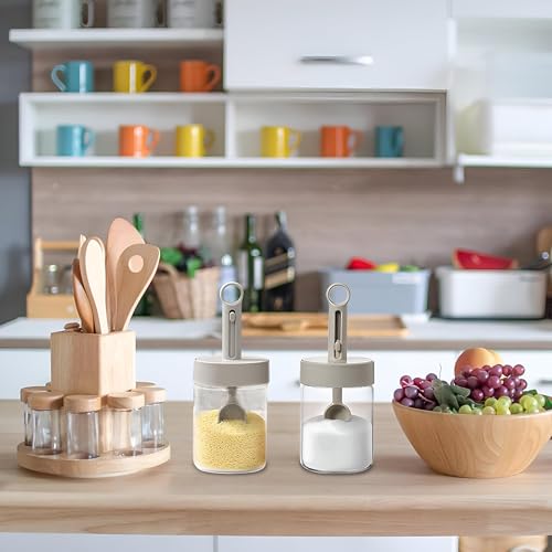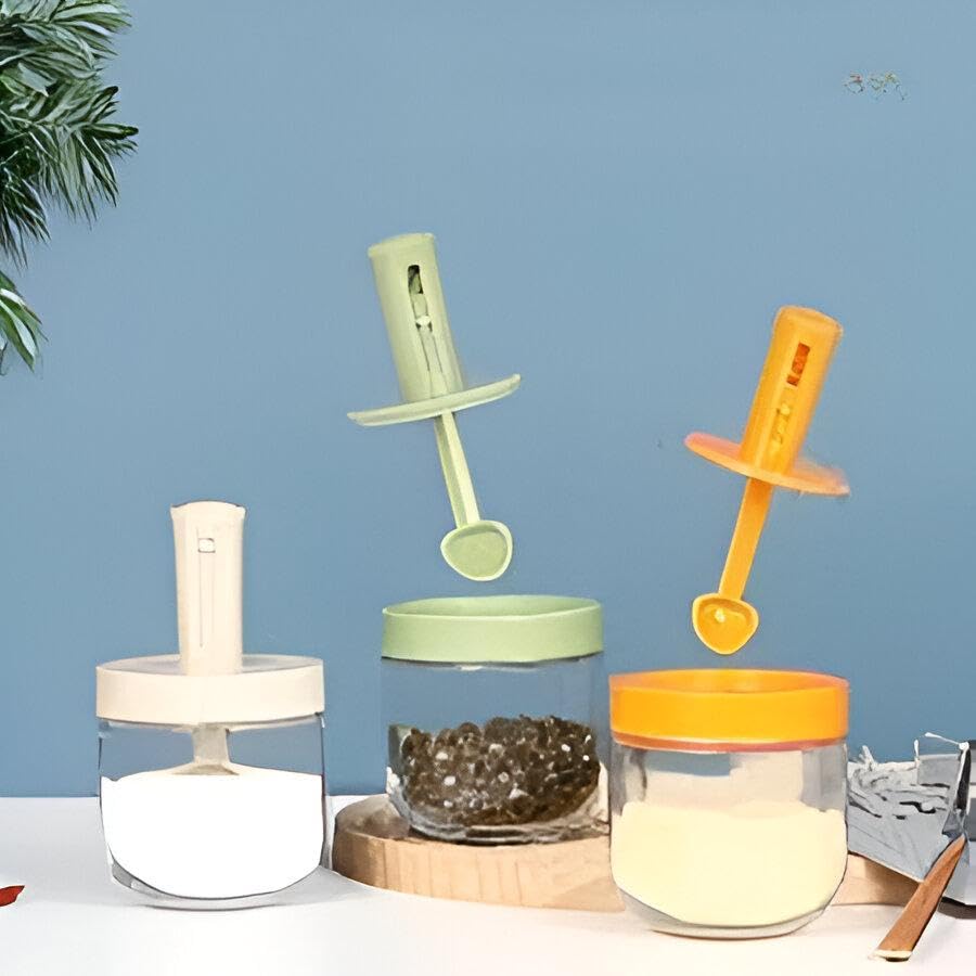Generic - برطمان توابل - تخزين عملي محكم الغلق للملح والسكر والفلفل مع ملعقة سهلة الاستخدام قابلة للسحب (3 قطع)