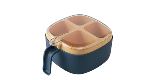 Generic - طقم برطمانات توابل - تخزين بلاستيكي عالي الجودة مع اغطية وملاعق للحفاظ على نضارة مستلزمات المطبخ الخاصة بك، منظم توابل اكريليك بيد وغطاء مقسم من اربعة صناديق (الخيار الثاني)