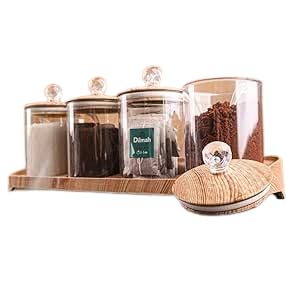 Generic - برطمانات تخزين من الأكريليك، مجموعة من 4 قطع، سعة 710 مل، مع أغطية خشب البامبو ومعالق