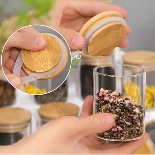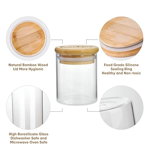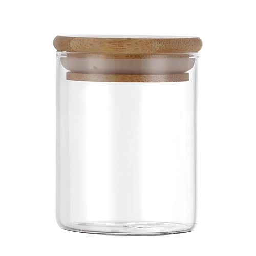 Generic - حافظة توابل - برطمان زجاجي أنيق بسعة 200 ملليلتر لحفظ الأعشاب والتوابل، يتميز بغطاء خشبي آمن للحفاظ على نضارة التوابل (قطعة واحدة)