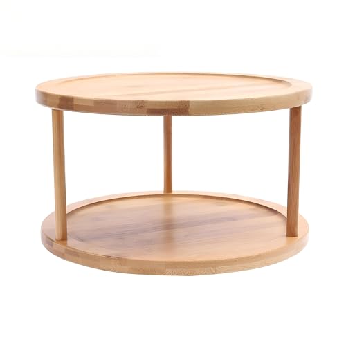 generic - رف منظم التوابل - رف خشبي عملي مع ميزة دوارة لسهولة الوصول إلى التوابل واطباق التقديم، مثالي للتجمعات العائلية والحفلات
