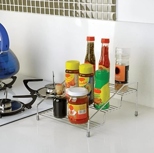 Generic - رف توابل - منظم من 3 طبقات، تصميم معدني عصري، حامل متعدد الاستخدامات للتوابل ومستحضرات التجميل أو رف للحمام / المطبخ، مقاس 32 × 10 × 18 سم