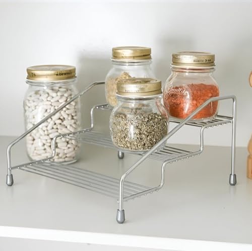 - سواء كنت بحاجة إلى طريقة أنيقة ومميزة لتخزين برطمانات التوابل في المطبخ أو تنظيم مستحضرات التجميل الخاصة بك في غرفة النوم أو الحمام أو ترتيب الأشياء الصغيرة حول منزلك، فإن هذا الرف هو الحل الأمثل لجميع هذه الاحتياجات.