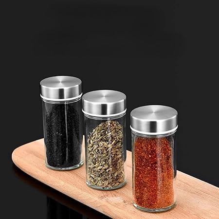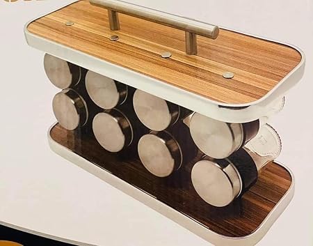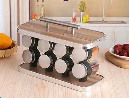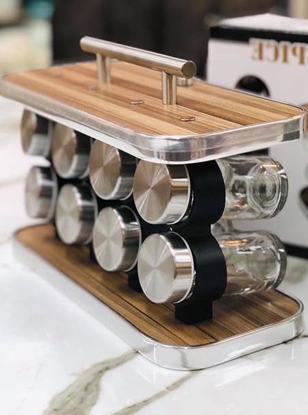 Generic - رف توابل ومجموعة التوابل، منظم برج توابل المطبخ لسطح الطاولة او الخزانة، مصنوع من الستانلس ستيل والخشب، برطمان زجاجي عالي الشفافية