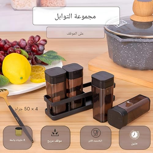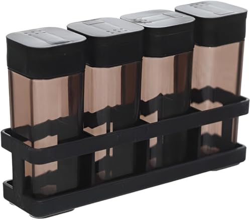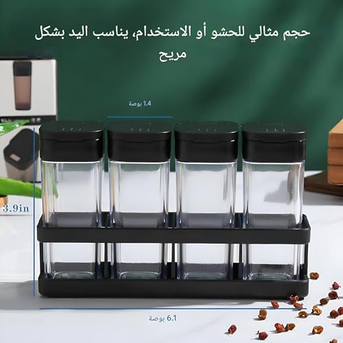 Generic - هزازات التوابل مع رف - 4 مجموعات من حاويات التوابل الصغيرة بفتحات صب مزدوجة قابلة للتعديل، منظم انزلاقي مفتوح لسهولة الاستخدام بيد واحدة، برطمانات ملح وفلفل شفافة للشواء والتخييم والسفر