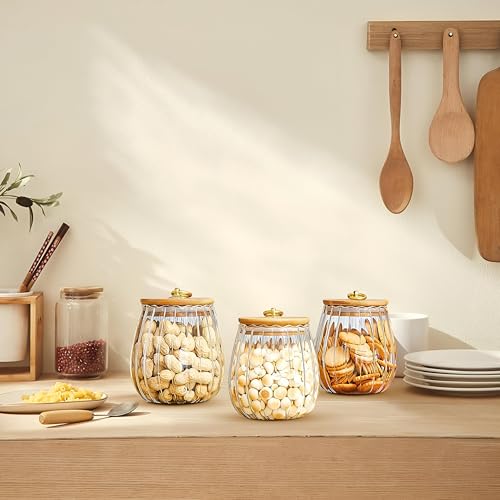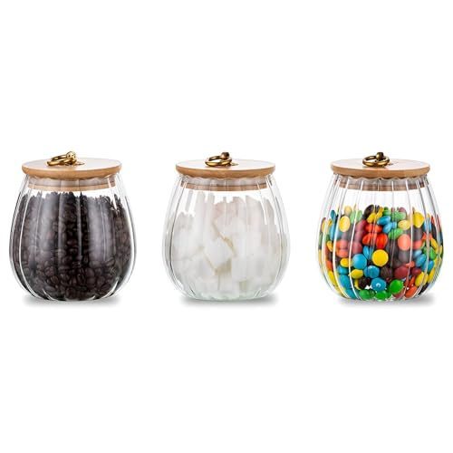 Generic - تخزين التوابل - برطمان زجاجي شفاف 600 مل مع جزء علوي من الخيزران ومقبض معدني مطاطي مضاد للانزلاق، غطاء محكم قابل للقفل، مثالي لتنظيم التوابل والاعشاب واكياس الشاي وفلاتر القهوة. (3 قطع)
