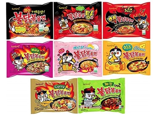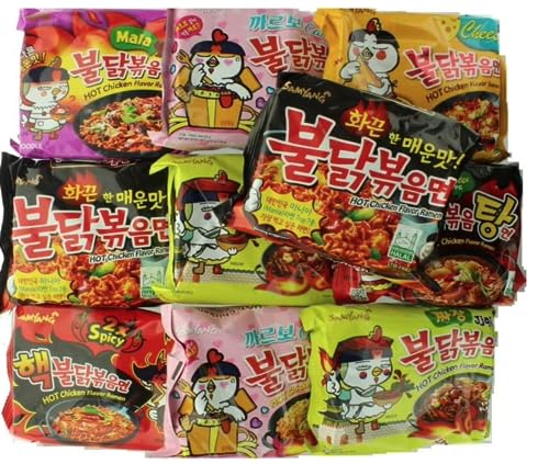 SPICEHUB - عبوة تشكيلة تحدي نودلز ساميانج بولداك رامن الكورية الحارة من سبايس هوب، 5 عبوات بنكهات عشوائية مختلفة