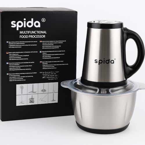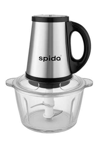 SPIDA - قطاعة كهربائية 2 في 1 SPD-HJ1002 من الفولاذ المقاوم للصدأ مع وعاء زجاجي سعة 2 لتر، 450 وات بشفرات حادة وتصميم أنيق وكفاءة عالية من سبيدا