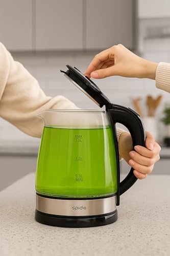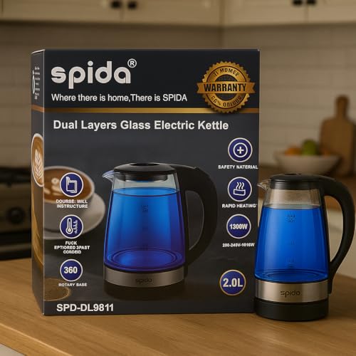 SPIDA - غلاية كهربائية SPD-DL9811 سعة 2 ل وقدرة 1800 وات من زجاج مزدوج الطبقات مع إضاءة ليد بتصميم آمن وبارد الملمس مع لمسة نهائية أنيقة من سبيدا
