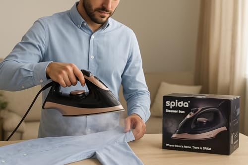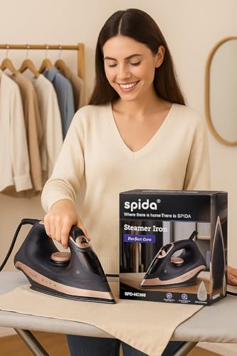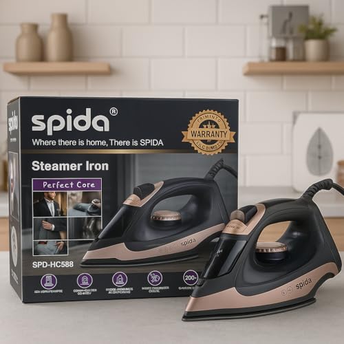 SPIDA - مكواة بخار للملابس طراز SPD-HC588 بقدرة 2200 وات- تصميم صغير بخزان مياه كبير - مخرج بخار قوي لإزالة الكرمشة بسرعة من سبيدا