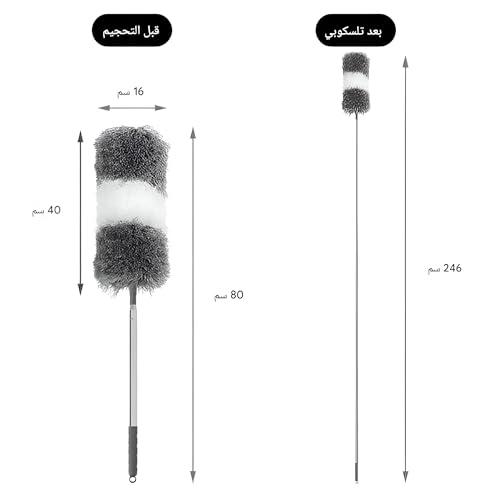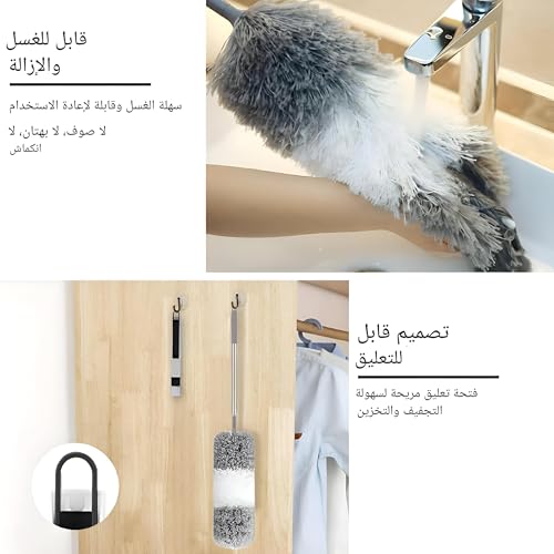 - لمزيد من الراحة، تحتوي منفضة الغبار على رأس من القماش المصنوع من الألياف الدقيقة القابل للإزالة مما يجعلها سهلة التنظيف والصيانة. بعد الاستخدام، ما عليك سوى فصل الرأس وشطفه بالماء الدافئ والصابون وتركه يجف في الهواء. كما أنها مزودة بمقبض حلقي لسهولة التعليق والتخزين، مما يضمن أن تكون أداة التنظيف الخاصة بك في متناول اليد دائمًا عند الحاجة.