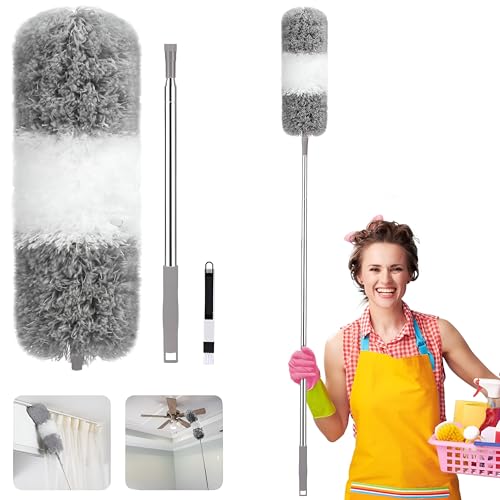 - تتميز منفضة الألياف الدقيقة بعمود تلسكوبي رائع من الفولاذ المقاوم للصدأ يمكن أن يمتد حتى 100 بوصة، مما يسمح لك بتنظيف الأسقف العالية وأنسجة العنكبوت والستائر والجدران وحتى الزوايا التي يصعب الوصول إليها دون عناء دون الحاجة إلى سلم متدرج غير مستقر أو كرسي متذبذب، وبالتالي ضمان سلامتك مع الحفاظ على منزل خالٍ من الغبار.