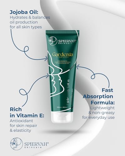 Spiervah - لوشن مرطب للجسم غني بزيت الجوجوبا وفيتامين اي برائحة جاردينيا وتركيبة سريعة الامتصاص للبشرة العادية والدهنية من سبيرفا، سعة 250 مل