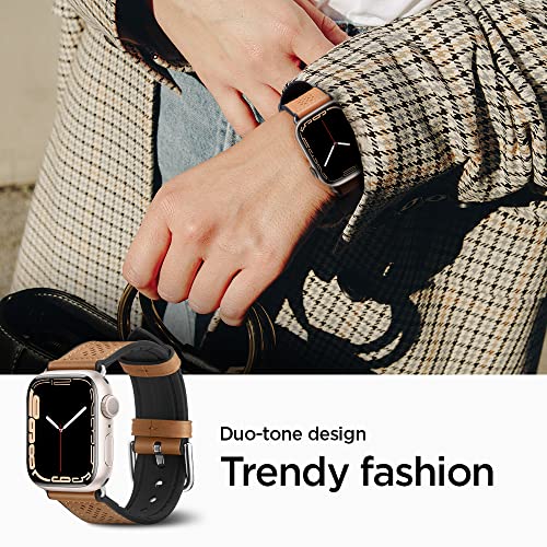 Spigen - سوار ساعة بتصميم ريترو مصمم لساعة ابل سلسلة 7 - 8 41 ملم والسلسلة SE2 - 6 - SE - 5 - 4 40 1 - 2 - 3 38 من سبيجن - بني للكبار الجنسين